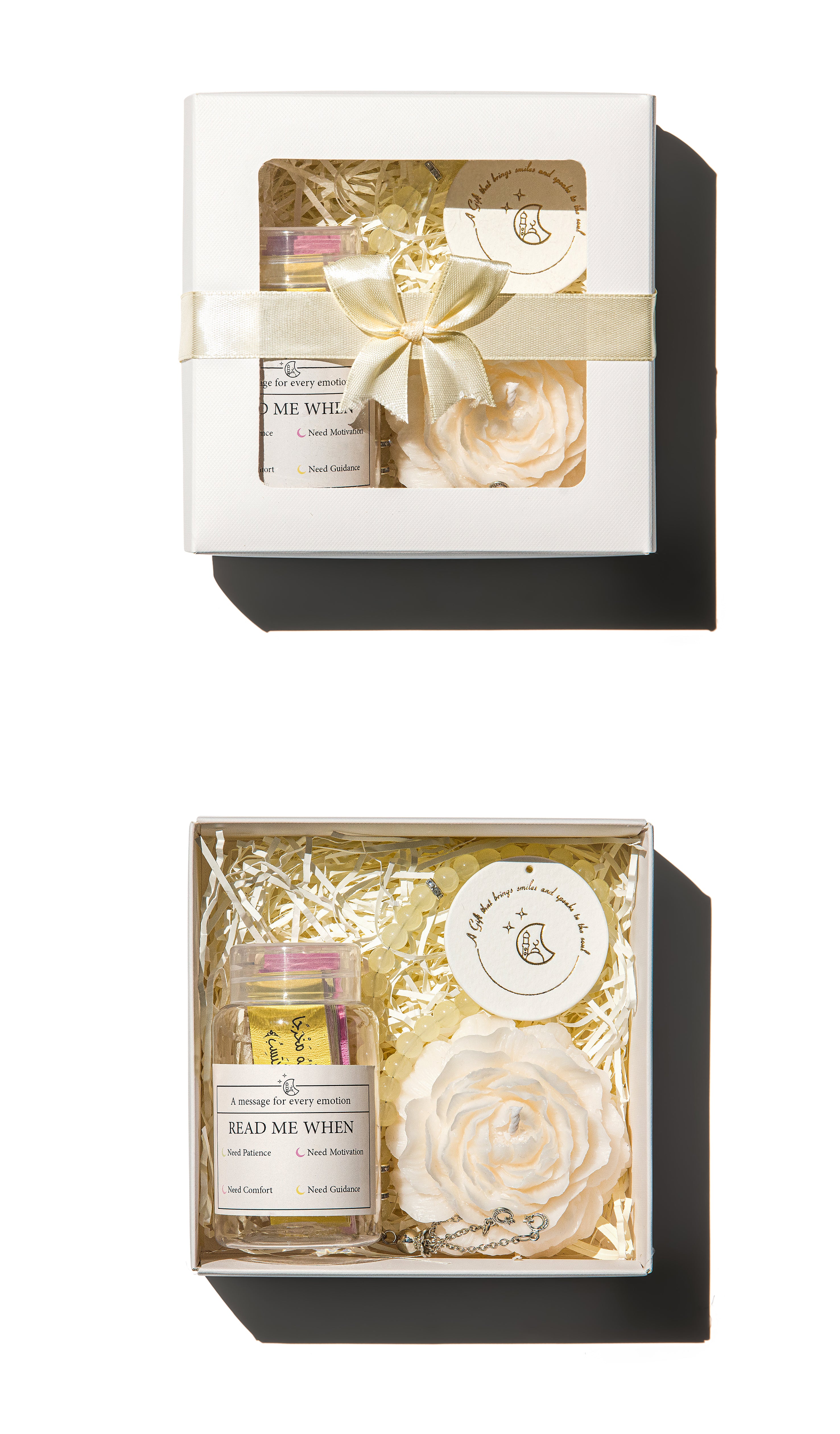 This Giveaway Islamic Box is designed as the perfect gift. Featuring a “Read Me When” jar of heartfelt notes, a gentle scented candle, and a mesbahah for dhikr, it’s a beautiful way to share peace, love, and spiritual moments with your loved ones. Whether you’re celebrating a wedding, henna night, baby shower, Ramadan gathering, or any blessed occasion, each piece is thoughtfully chosen to convey love, care, and heartfelt blessings.